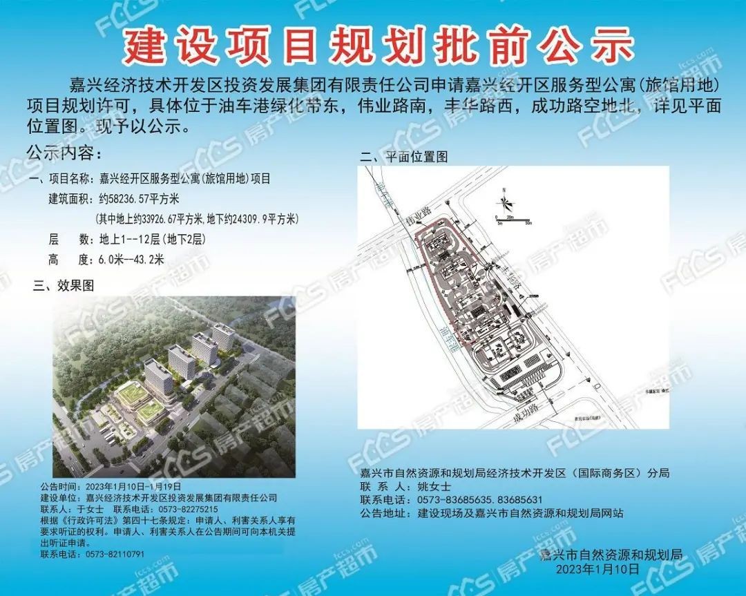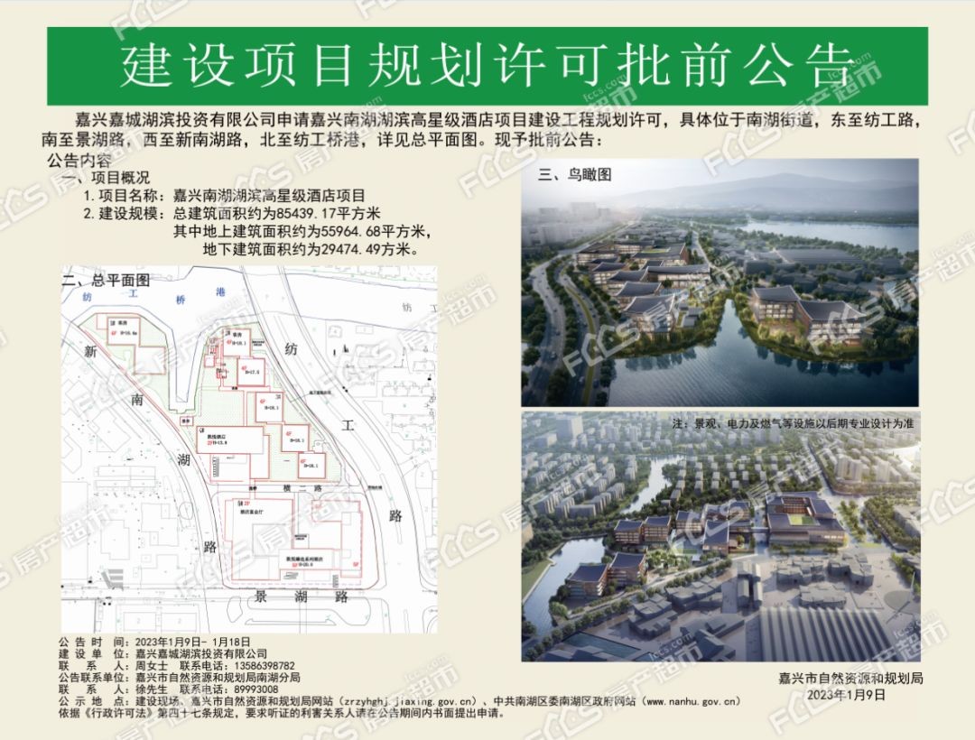 嘉兴南湖湖滨高星级酒店建设工程规划许可批前公示