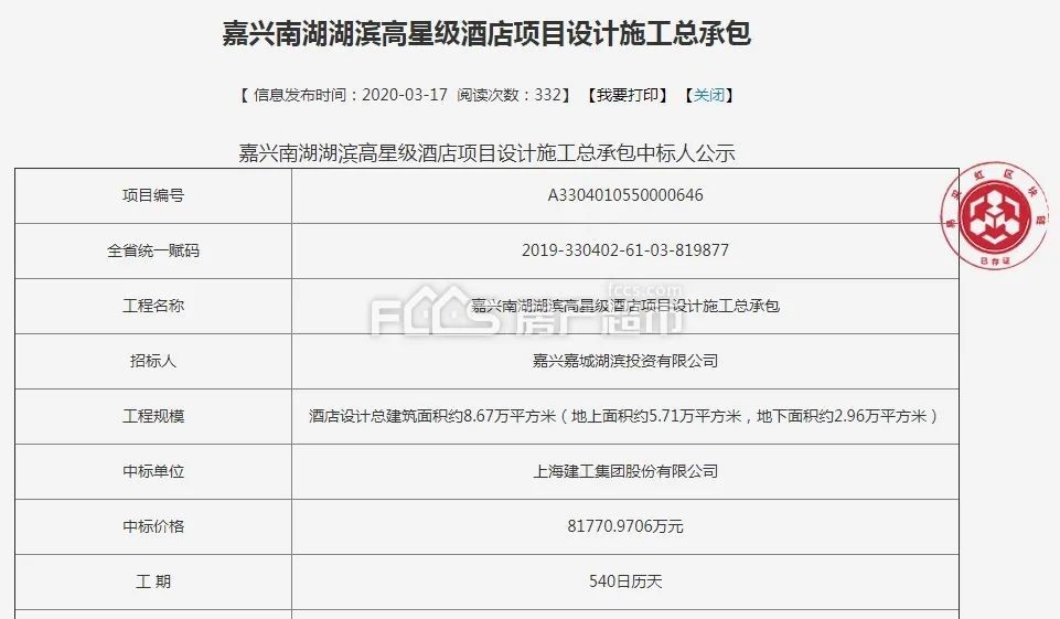 根据2020年项目的中标公告,南湖湖滨高星级酒店的投资金额绝对算得上是高级别。