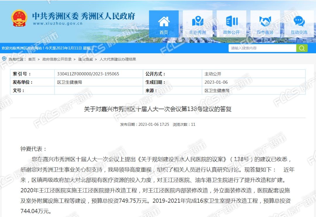 规划建设秀水医院,提升秀洲区北片医疗配套