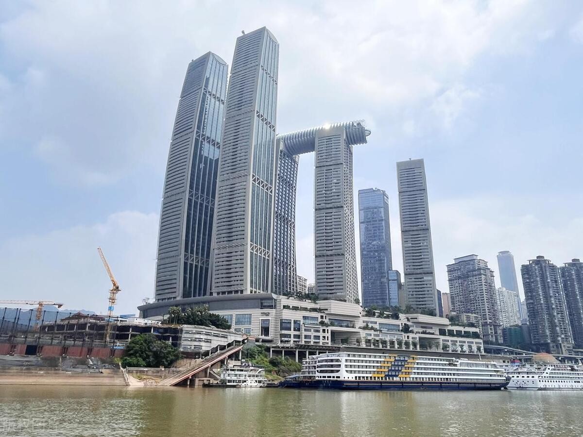 重庆来福士广场是新加坡在华最大的投资项目,投资总额超过240亿元,于2012年9月28日开工, 塔楼设计理念源于重庆的航运文化,塔楼外立面均为弧线造型,像被风吹得微微弯曲的船帆,寓意重庆这座城市乘风破浪、扬帆起航,因此叫做“朝天扬帆”,在60层楼高空设“水晶廊桥”连接4座塔楼。2019年项目建成开业当年,被专家学者评为十大中国最丑建筑的第一名,上榜理由是“野蛮践踏重庆历史文脉,粗暴破坏山城环境尺度”。 但在2020年11月18日,却当选“成渝十大文旅新地标”、2021年5月21日,又获得“最佳高层建筑”。 2022年10月31日,重庆来福士被列入“2022中国新时代100大建筑·超高层建筑”名单。(引自百度百科)