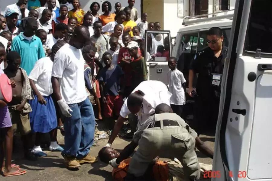 由于战乱,利比里亚整个国家机器几乎瘫痪,我们的另一项重要工作是培训当地警察。当地基础设施极其落后,派出所都是三面漏风的,我就在这里,和战友们一起培训出一个个合格的当地警察。我们的工作得到了联合国高度肯定,离开的时候,我和我的战友们均被授予联合国维和勋章。