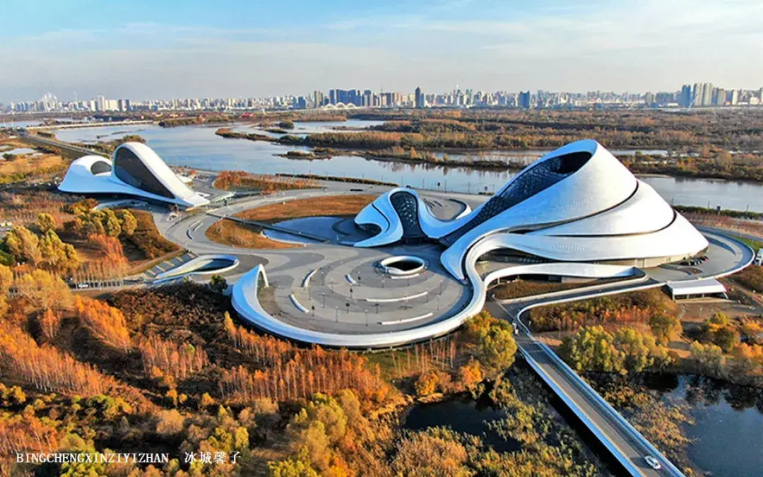 2015年,在哈尔滨松花江北岸的江畔,诞生了两座“雪山”,两座银色的峰形建筑造型独树一帜,线条流畅洒脱。夏秋,置于湿地间的大剧院,像栖憩在江畔的两只大江鸥;冬日,在白雪皑皑之间,它像隆起的雪山屹立在冬日的松花江边。这便是哈尔滨的新地标——哈尔滨大剧院 。