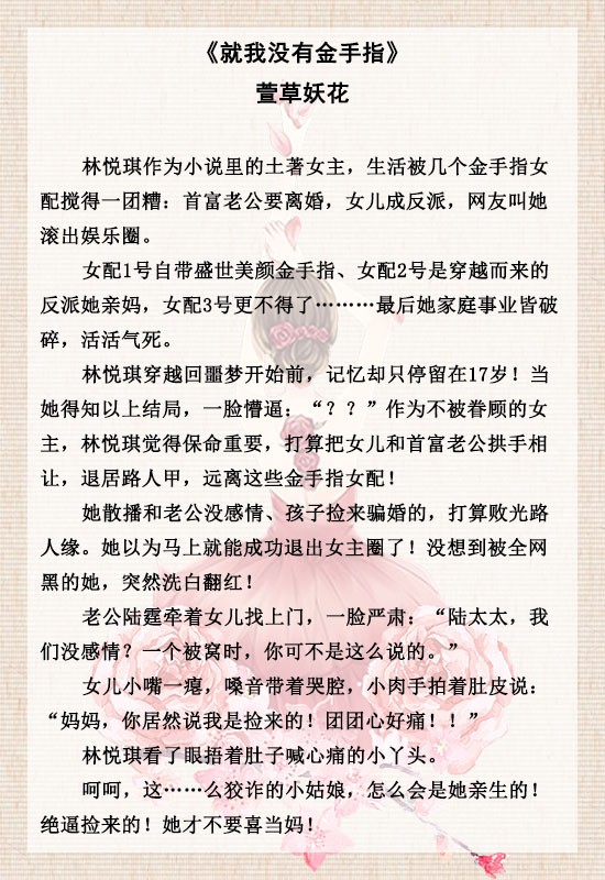 【短评】女主心理年龄只有17,得知将来会被金手指女配折腾得很惨,主动让出丈夫孩子,后来,可爱小团子和孩子爸找上门,女主开始勇敢跟女配们对战。