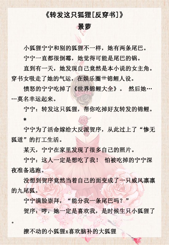 3、《转发这只狐狸[反穿书]》