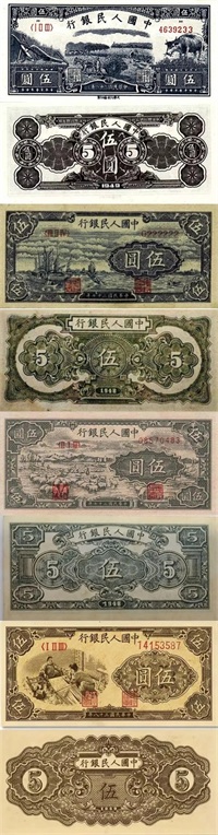5元四个版本正背面图片
