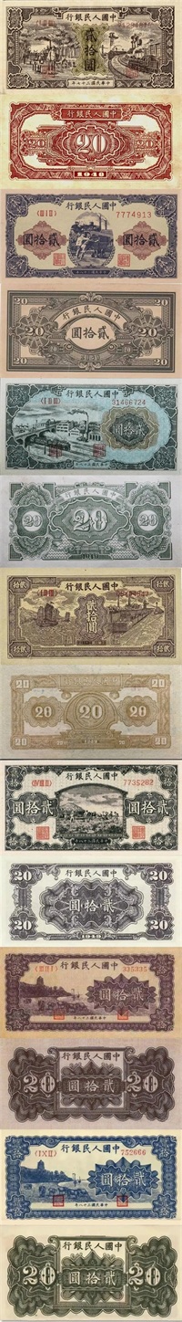 20元七个版本正背面图片