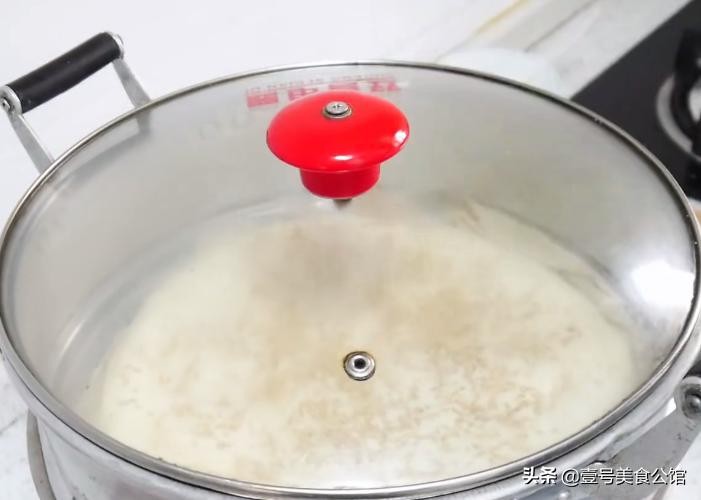 第八步:一般来说这样做出来的千层饼是需要二次醒发的,为了加快这个步骤,我们直接把整块的面饼放在蒸锅上蒸12分钟(记得垫纱布哦),加速醒面。