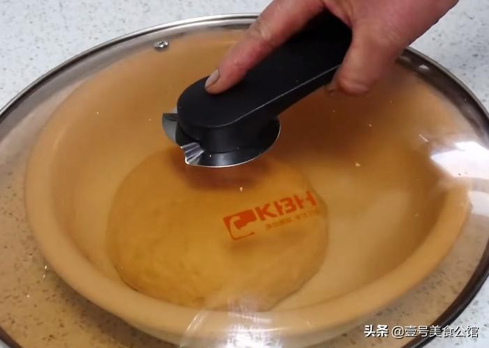 第二步:把揉好的面团放在碗中,盖上锅盖或者铺一层保鲜膜,放在温暖的地方发酵40分钟。