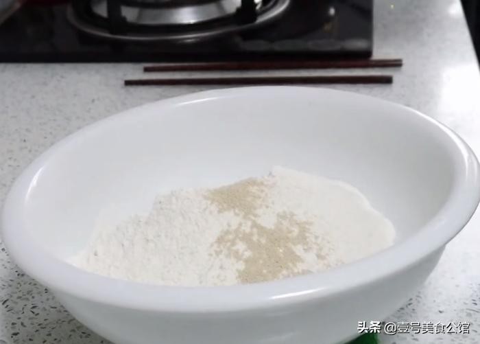 准备原料:中筋面粉两百克,酵母3克,白糖4克,盐4克,辅料准备辣椒面,胡椒粉,椒盐,喜欢吃葱香味的千层饼,也可以准备一些葱花。首先我们准备一个无水无油的干净大碗,依次加入中筋面粉,酵母,白糖,盐均匀搅拌一分钟。