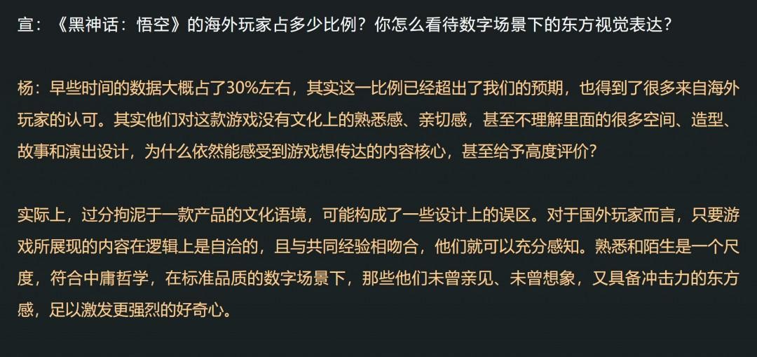 《黑神话》杨奇:海外玩家占比 30% 已超出预期