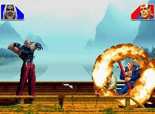 但可惜的是,上帝卢卡尔仅仅存在于CVS系列中,这是SNK授权给CAPCOM打造的游戏,因此画风相对来说比拳皇系列早年的作品要好得很多:3D背景,新基版⋯⋯