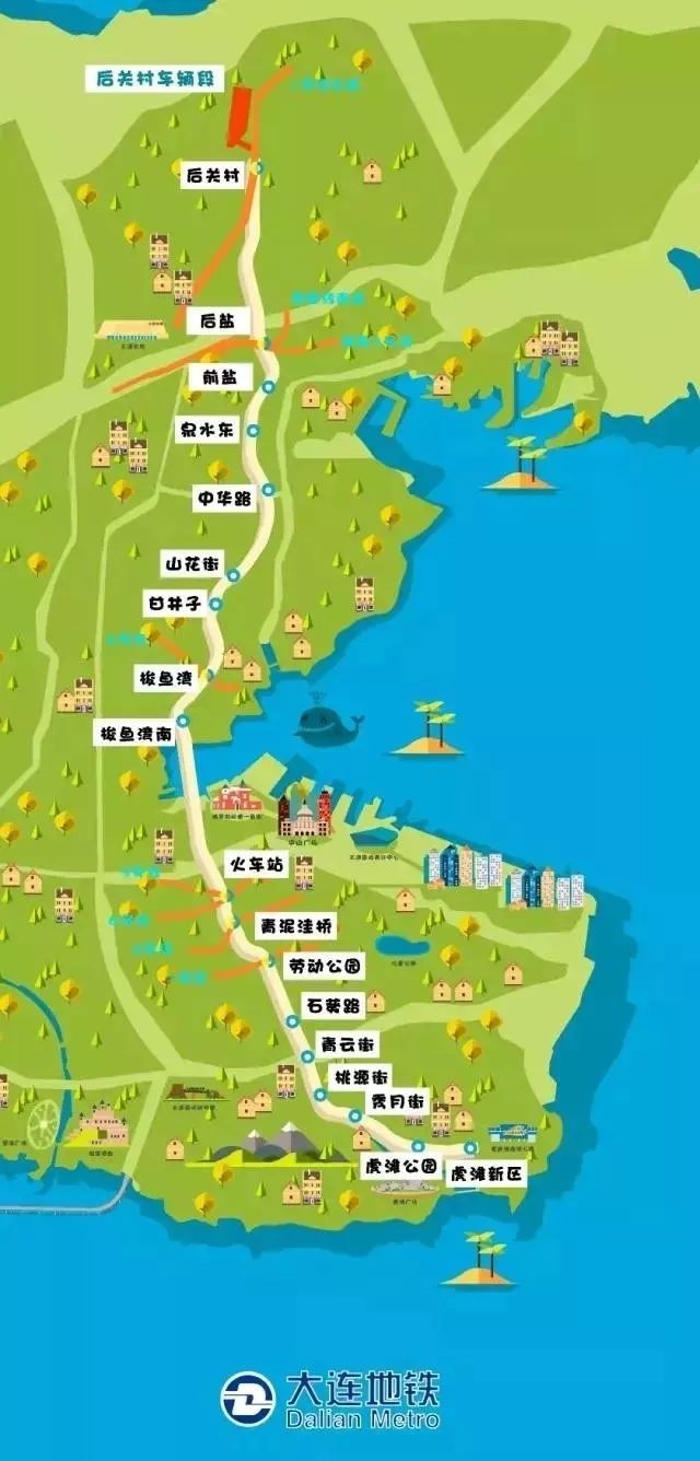 南起1号线姚家站,北至大连新机场,全长13.2公里,设3座车站。该线路是1号线的延伸线,也是连接大连新机场的机场线。1号线三期在后关村站与5号线贯通运营至大连新机场。根据市政府工作部署,该线的前期工作将根据新机场的建设情况择机启动。