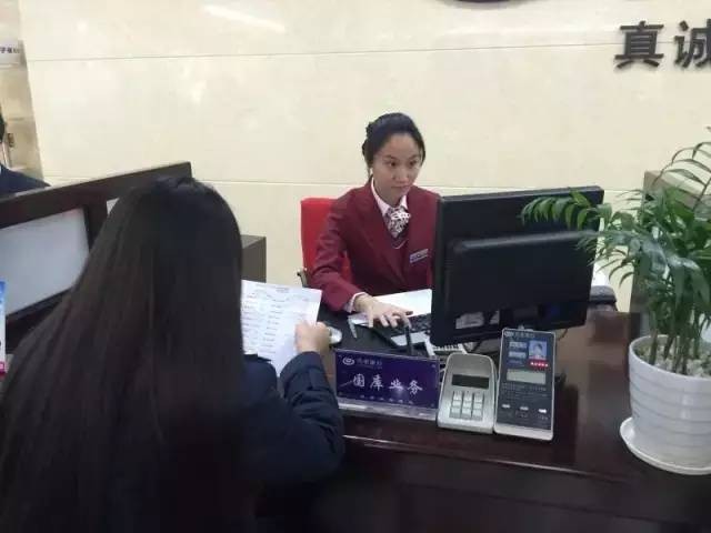 兴业银行总行营业部营业大厅国库专柜,工作人员正在为客户办理国债