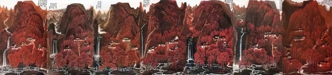 其他五幅皆在1964年创作于北京西山。李可染先用半斤内库朱砂创作了四幅,其中两幅较小的,两幅大的。