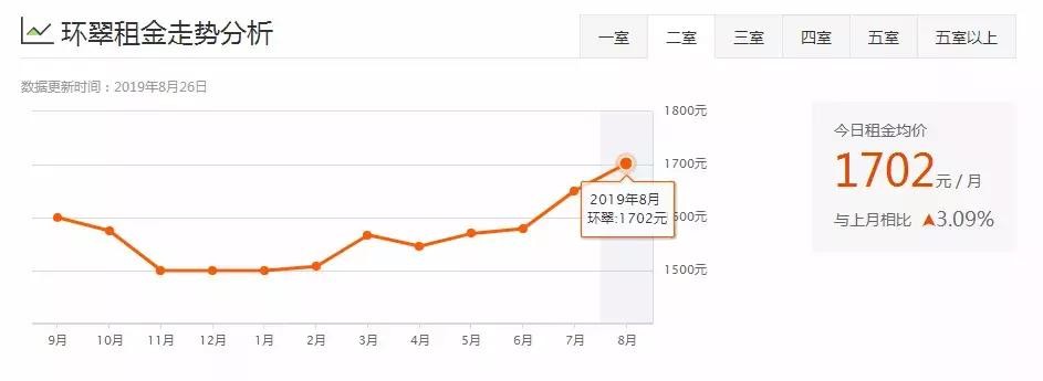 两居室租房均价:1702元/月