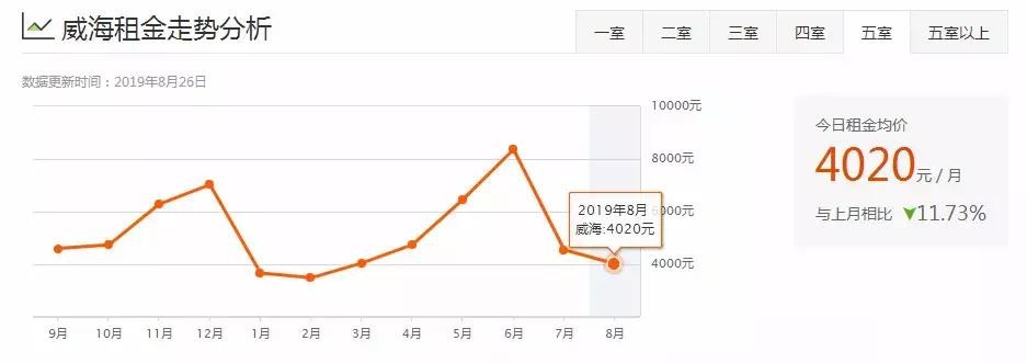 威海8月租房均价盘点!你租的房子多少钱一个月?