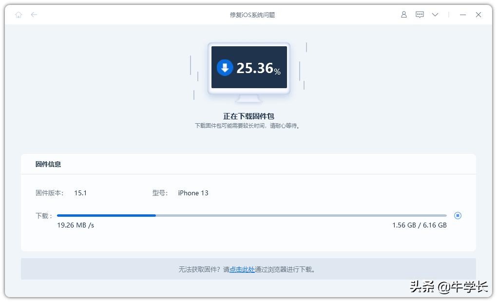 这里以操作简单、小白适用的牛学长苹果手机修复工具为例,其修复功能可减少刷机系统故障,这里演示刷机操作的整个流程。