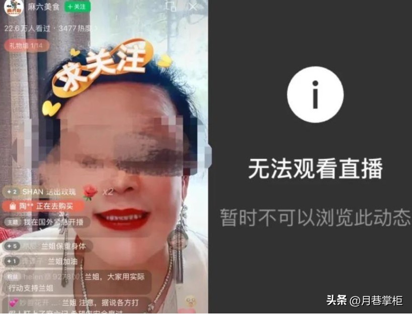 她不仅自己的账号被永久封禁,儿子也被连累封号,俩人的直播间只能被迫暂停。