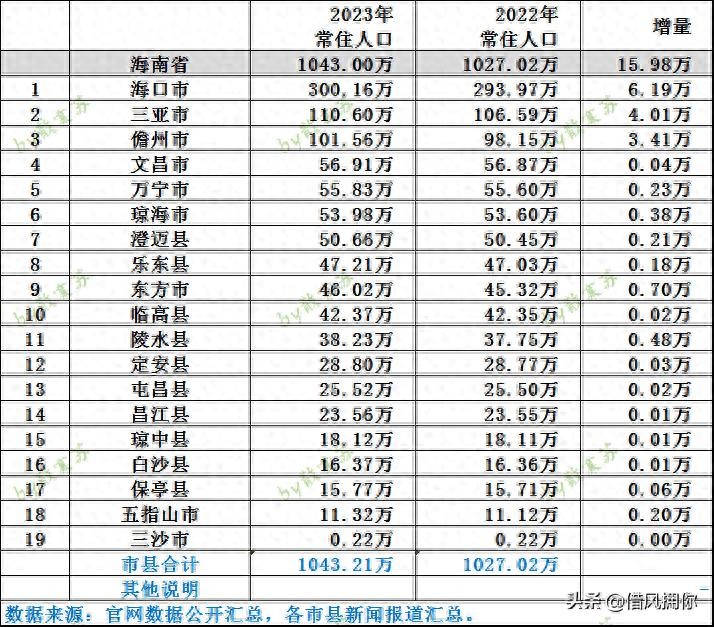 最近你有没有关注到海南省的常住人口数据?说实话,这可是个大新闻!这张榜单就像一出扣人心弦的好戏,揭开了2023年海南省各市县的人口版图,搞得大家都盯着看。看到海口市以300.16万人高居榜首,比去年硬是增加了6.19万人,我忍不住想问,海口是挖到了什么人气法宝吗?