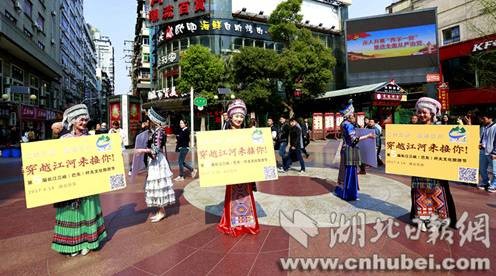 让人惊喜的是,活动宣传前期土家妹子分别在 武汉、荆州、荆门、宜昌、重庆、成都以及北京、杭州 这9大城市惊喜现身送出活动请柬,现场众多市民围观。