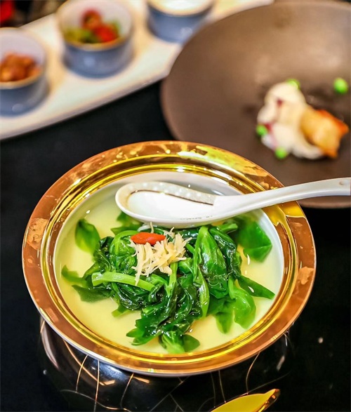 “一热抵三鲜”是老饕们的至理名言。更久的保留菜品温度才能让美味更加回味悠长。「旺顺阁1999」首次采用桌面内嵌加热工艺,配合定制铜炉鱼头泡饼餐具,将菜品温度保持在最佳状态。