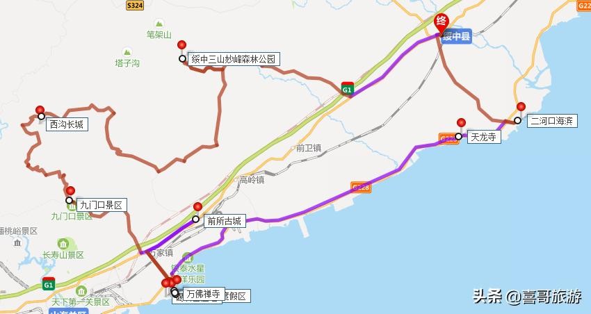 3、一次性游完葫芦岛绥中县以上全部好玩的景点。推荐行程路线:葫芦岛绥中县-绥中三山妙峰森林公园-西沟长城-九门口景区-前所古城-碣石宫遗址-东戴河风景度假区-止锚湾-万佛禅寺-天龙寺-二河口海滨-葫芦岛绥中县。