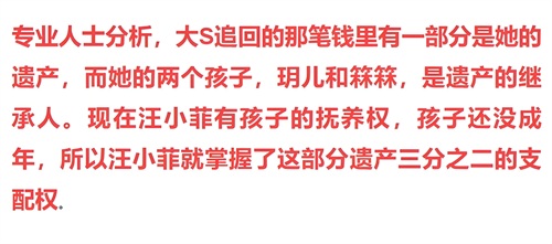 最终台湾信义豪宅会成为核心战场,汪小菲能否借户籍优势掌控2/3遗产呢?大S遗产分割方案是一个非常值得思考的问题。