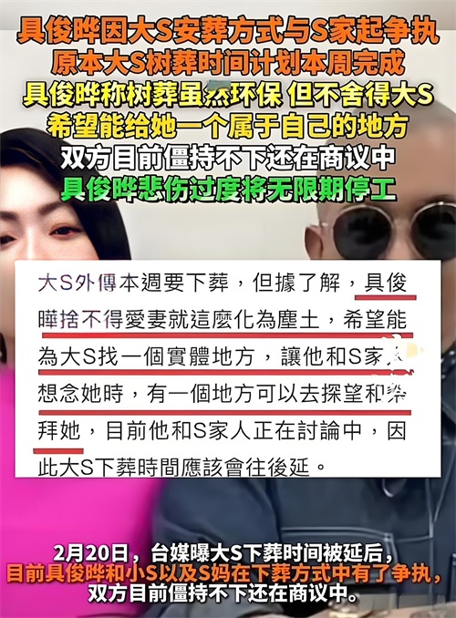 从避嫌到参与:具俊晔叫停树葬引争议,大S遗产分割暗藏玄机