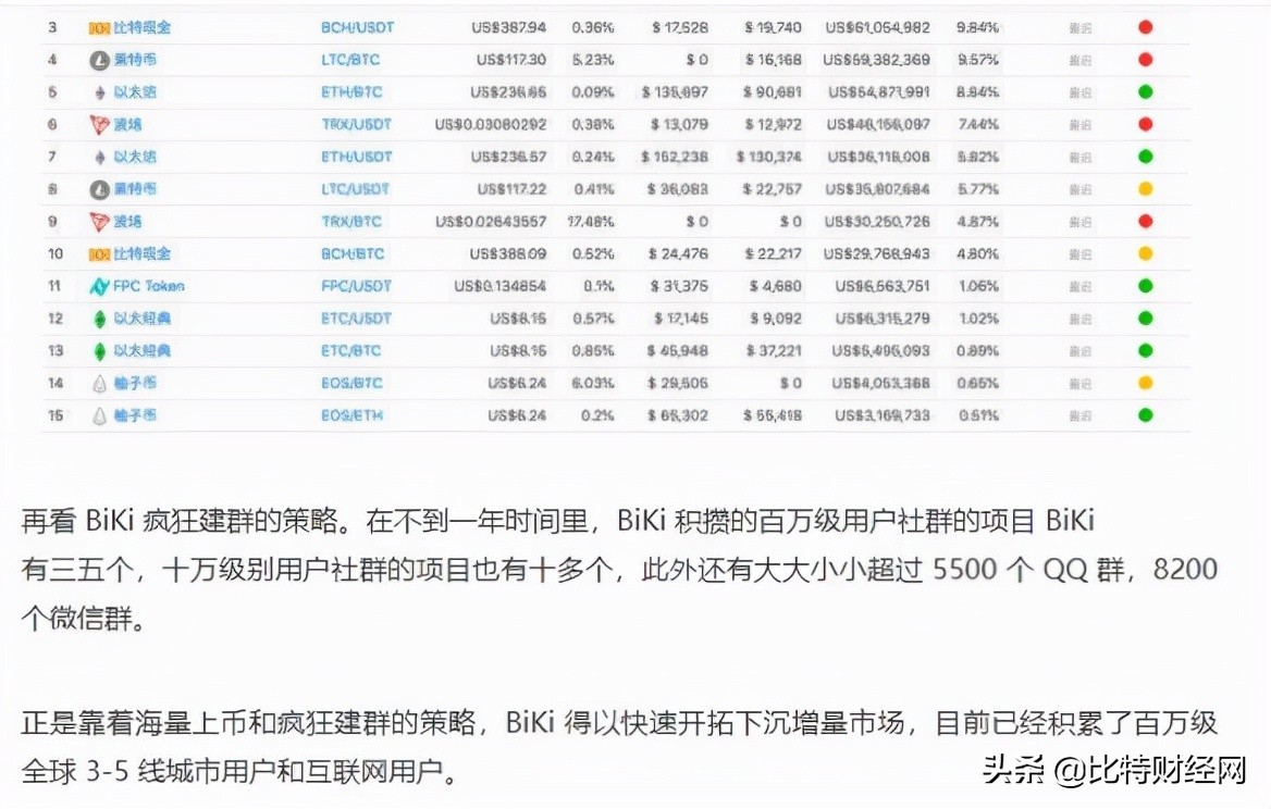 据此前媒体报道,在不到一年时间里,BiKi 积攒的所谓百万级用户社群的项目 BiKi有三五个,十万级别用户社群的项目也有十多个,此外还有大大小小超过 5500 个 QQ 群,8200 个微信群。