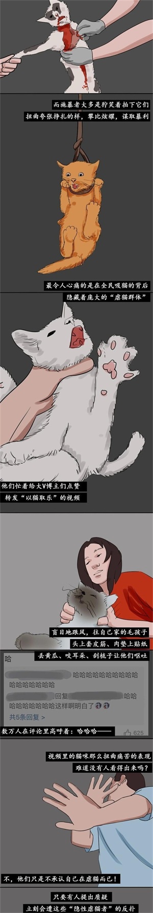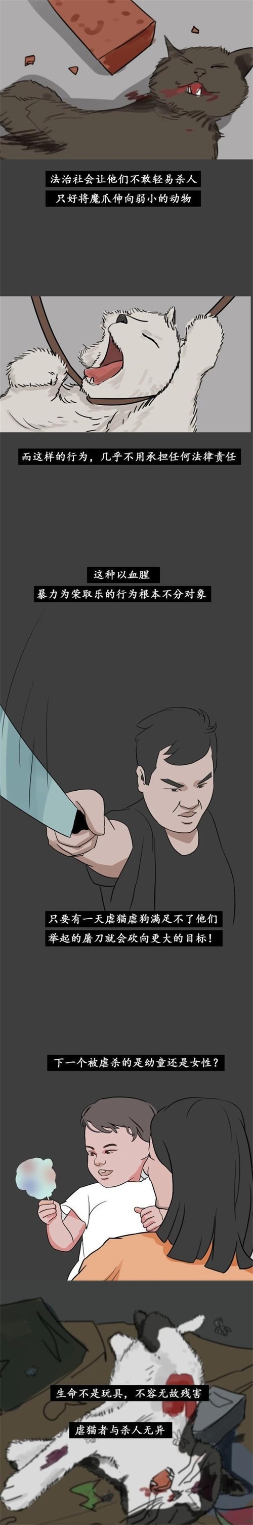 我们也经常可以在网络中看到有虐猫、虐狗的事情出现,甚至有很多人将虐猫的视频发布到网络上,供人们观赏,将这些视频当作艺术品来观看,在看到这样的视频,以及听到猫的惨叫声时,人们都会觉得毛骨悚然,惧怕这些虐猫的人,我们在平时遇到这种情况时,一定要严厉的阻止,不能任其发生下去,否则将会有更多的猫惨遭毒手。