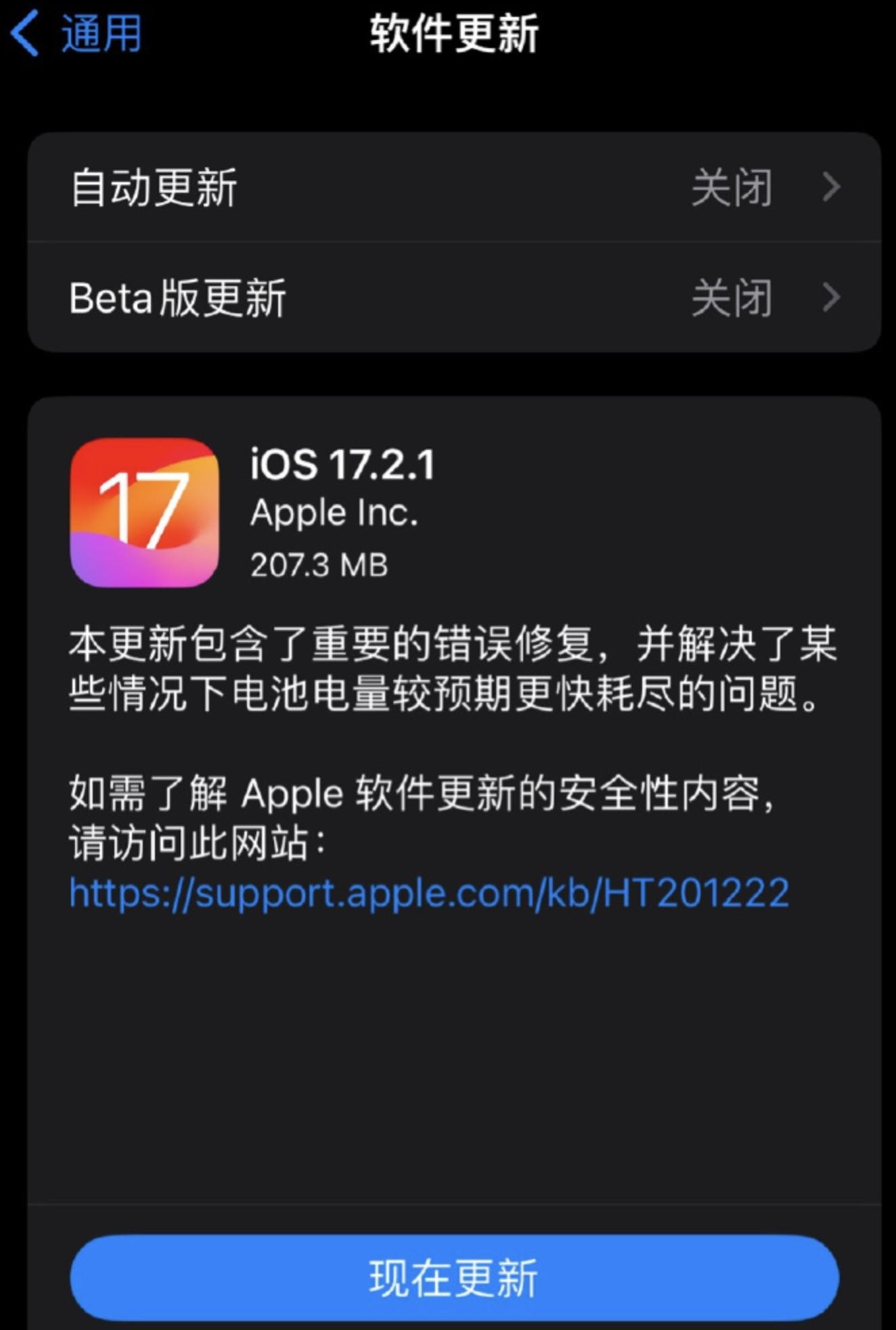 iOS17.2.1,基本是目前最省电的版本,值得所有iPhone升级。