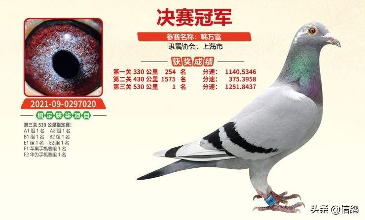 这羽5213赛鸽最终以第一关关437名、第二关15名、第三关第三名的战绩,获得了双关鸽王冠军。血统出自御林军名下的主力“传奇配对”,看到这里,这也就是为什么这羽赛鸽备受大家青睐的原因。高价卖出也是实至名归!