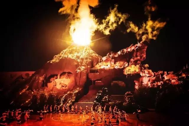 当你走进《丽江恋歌》的大型实景剧场,来自四面八方的惊奇和炫目瞬间将你包围:这里有巨型火山,能顷刻喷薄出十几米高的火焰;这里有健壮的藏族小伙勇攀火山,凿破巨石,掀起滔天巨浪,救民众于水火之间;这里有云南各民族的优美舞蹈,让我们感受到彩云之南的民族文化盛宴,还有颇具丽江特色的马帮文化群雕(高30米,宽80米),感受古老的千年茶马文化。