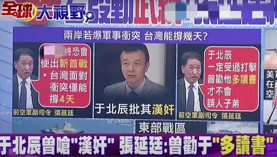 谈起两岸的军备情况时,张延廷面对“烧烤哥”黄暐瀚的追问,他悲观地表示: