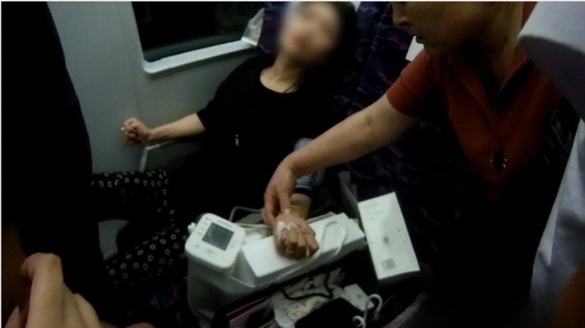 20时55分,G6984次列车刚刚驶出淄博北站,列车长杨佳巡视到5号车厢时,发现旅客李女士,瘫倒在座椅上、大口喘着粗气!她立即安排乘务员,紧急广播寻医,并将药箱送到5号车厢。