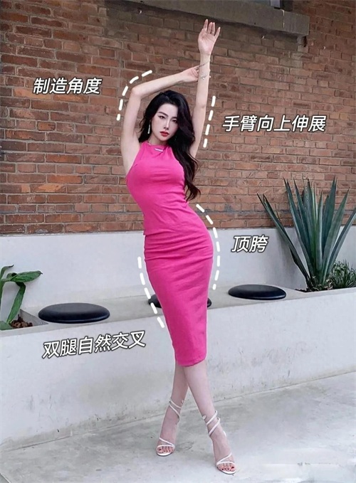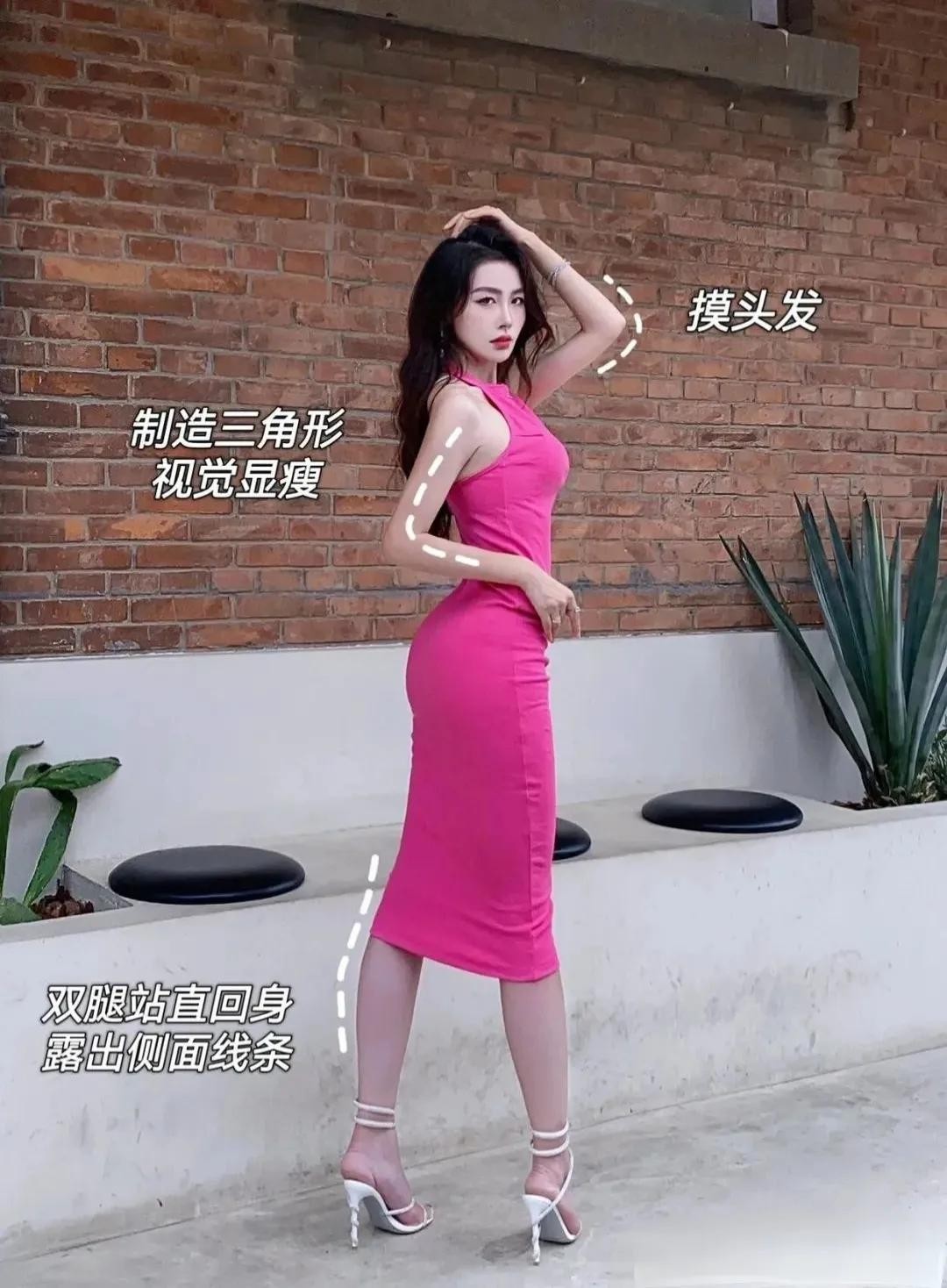 5、拍全身照要注重S曲线和三角形法则。利用肢体摆造型,制造视觉差;对角线构图,显瘦、显腿长。