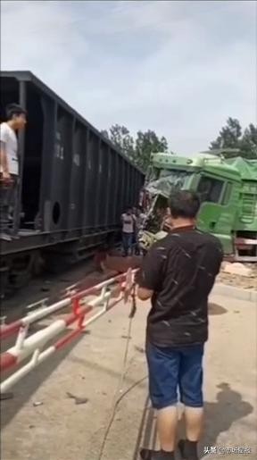 2020年6月8日14时10分,淮北市杜集区小朱庄北侧一处铁道路口发生交通事故。现场视频显示,一辆重型自卸货车与火车相撞,导致该货车驾驶室严重受损,事故一度造成该路段交通中断。