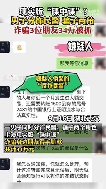现实版“碟中谍”?男子分饰民警 骗子两角诈骗3位朋友34万被抓