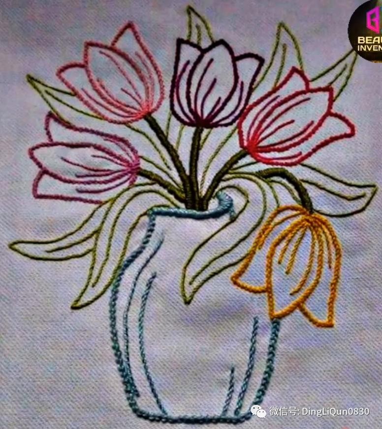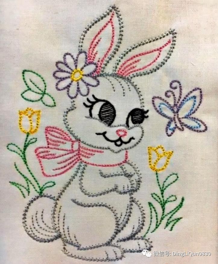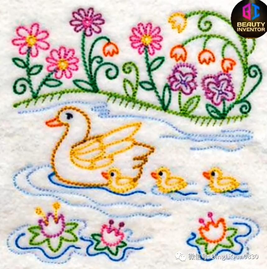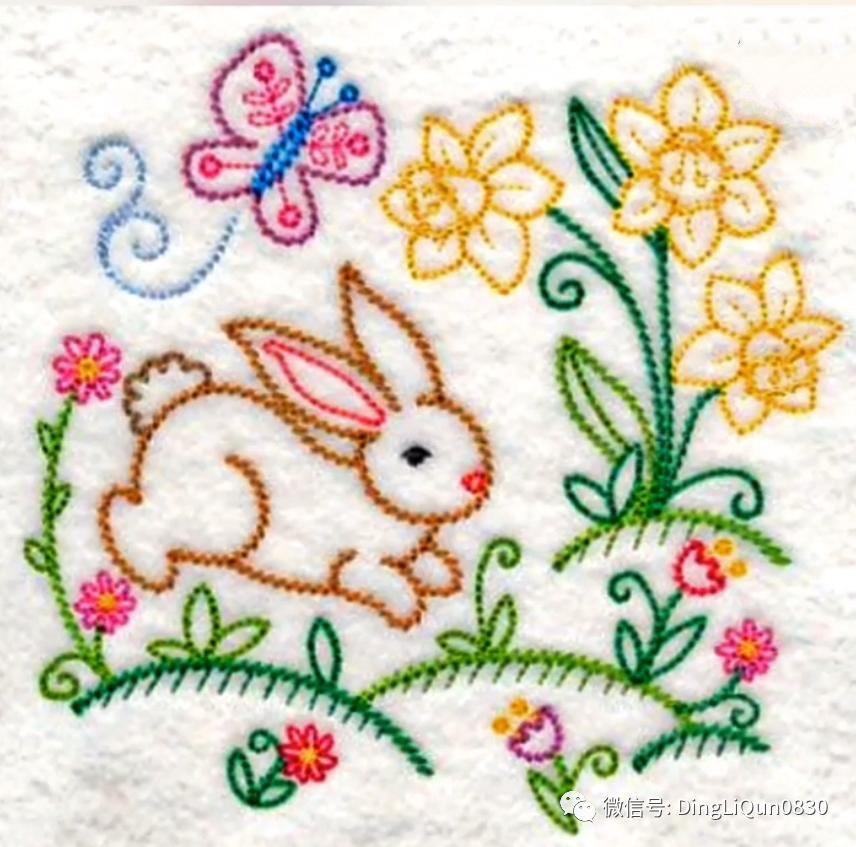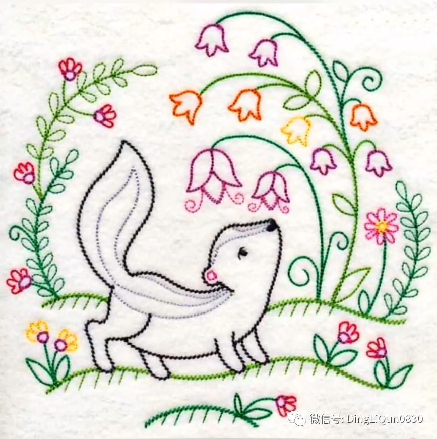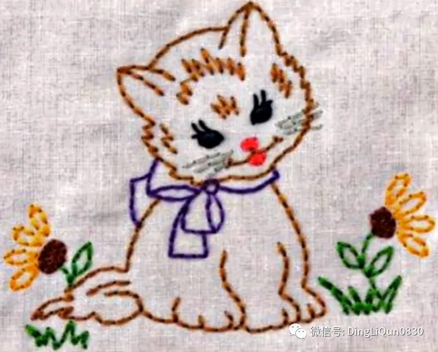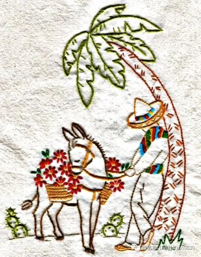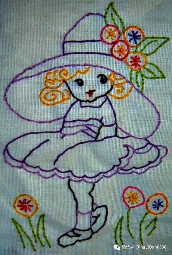 把寥寥几笔的简笔画,用线描的方式刺绣出来,感觉另有一翻韵味,配色也很不错,一起来欣赏一下: