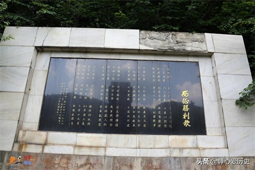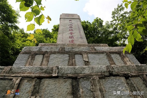 主碑8米正面镌刻第次西征会议遗址背面刻有青史永存4个字