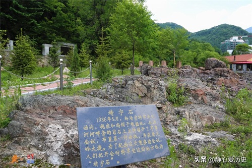 1936年5月杨靖宇就在这里召开第次西征会议之后在西征途中取摩天岭捷当乡民出于对杨靖宇敬仰将他主持会议时曾坐过石头称为靖宇石