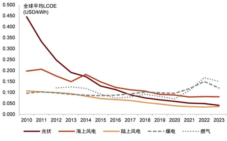全球主要电源度电成本变化趋势 图片来源:中金点睛