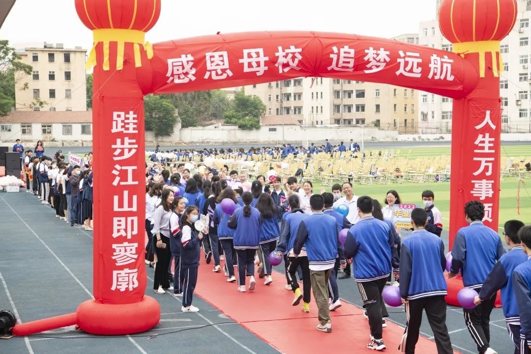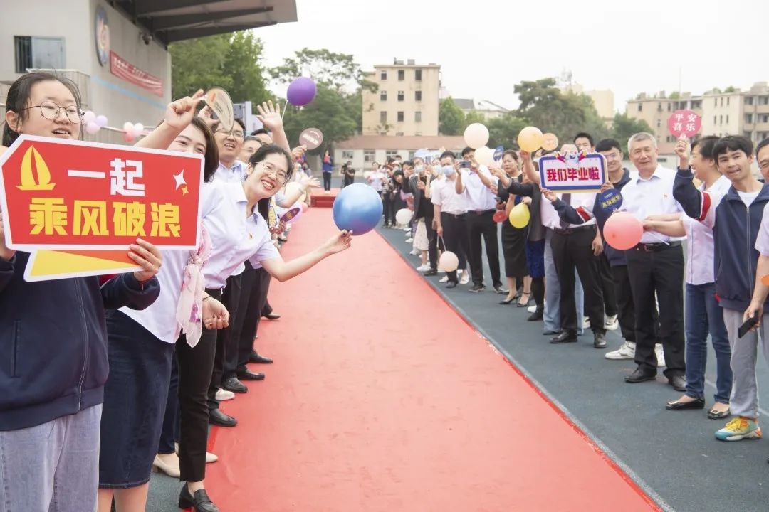 喜庆的红毯跳动着青春的节奏,昂扬的歌曲拉开了毕业典礼的序幕,2022届高三学子意气风发,隆重入场。学校领导、全体高三老师、家长代表和学弟学妹们热情欢迎,祝贺他们顺利毕业。