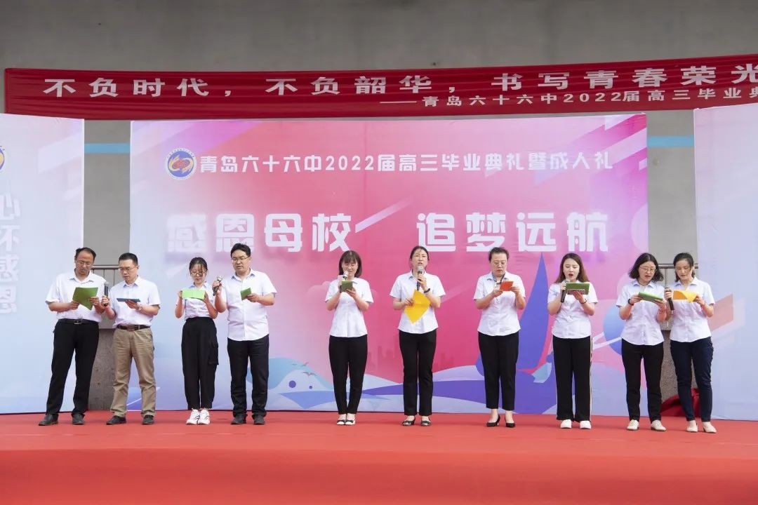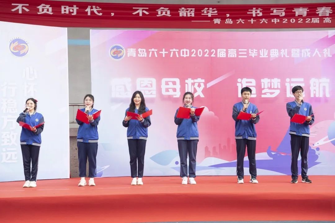 嘹亮的国歌声中,山东省青岛第六十六中学2022届高三毕业典礼暨成人礼正式拉开序幕。