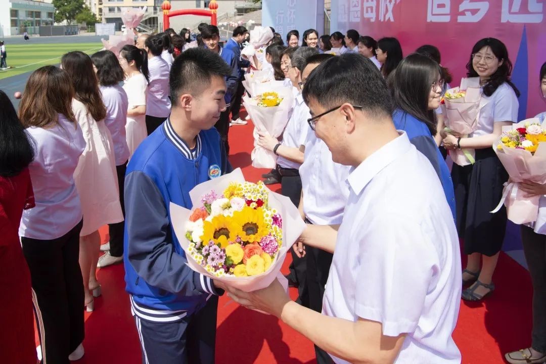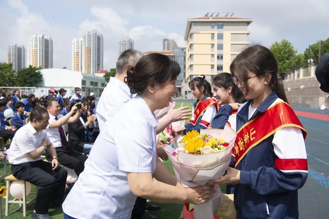 伴随着动人的歌声、学生们的掌声和欢呼声,高三学生代表向全体高三老师、各部门后勤服务工作人员献上美丽的鲜花,表达全体高三学子赤诚的感谢与感恩之心!