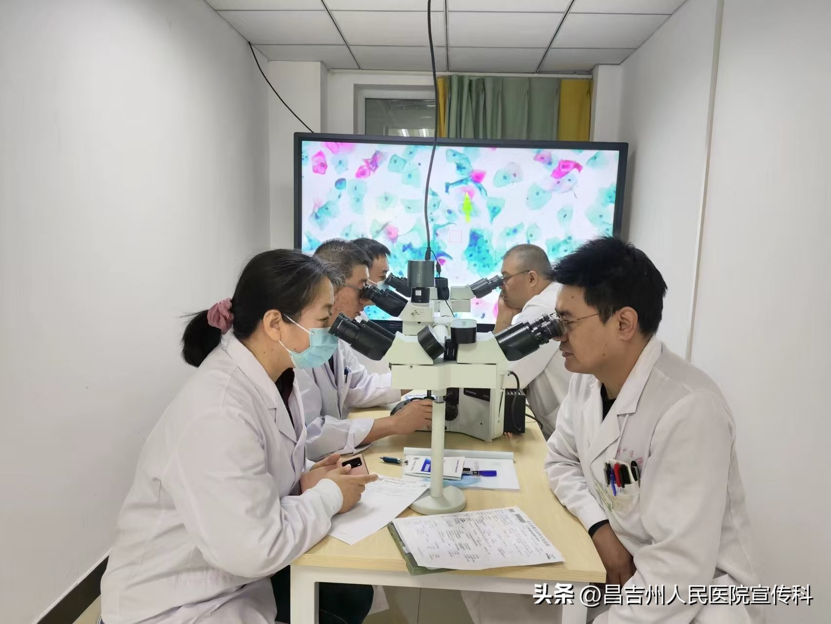 做为一名病理医生,我深刻认识到病理与临床之间相辅相成的密切关系,在新的环境下我积极融入科室与工作中,尊重科室同事,与各族同事友好相处,团结合作,营造和谐的工作学习氛围,共同提高整体业务技术水平。大家每周一起业务学习,交流工作中的心得体会及本专业的新知识、新进展等。在工作中碰到疑难问题,通过多头显微镜共同阅片,共同讨论解决问题。