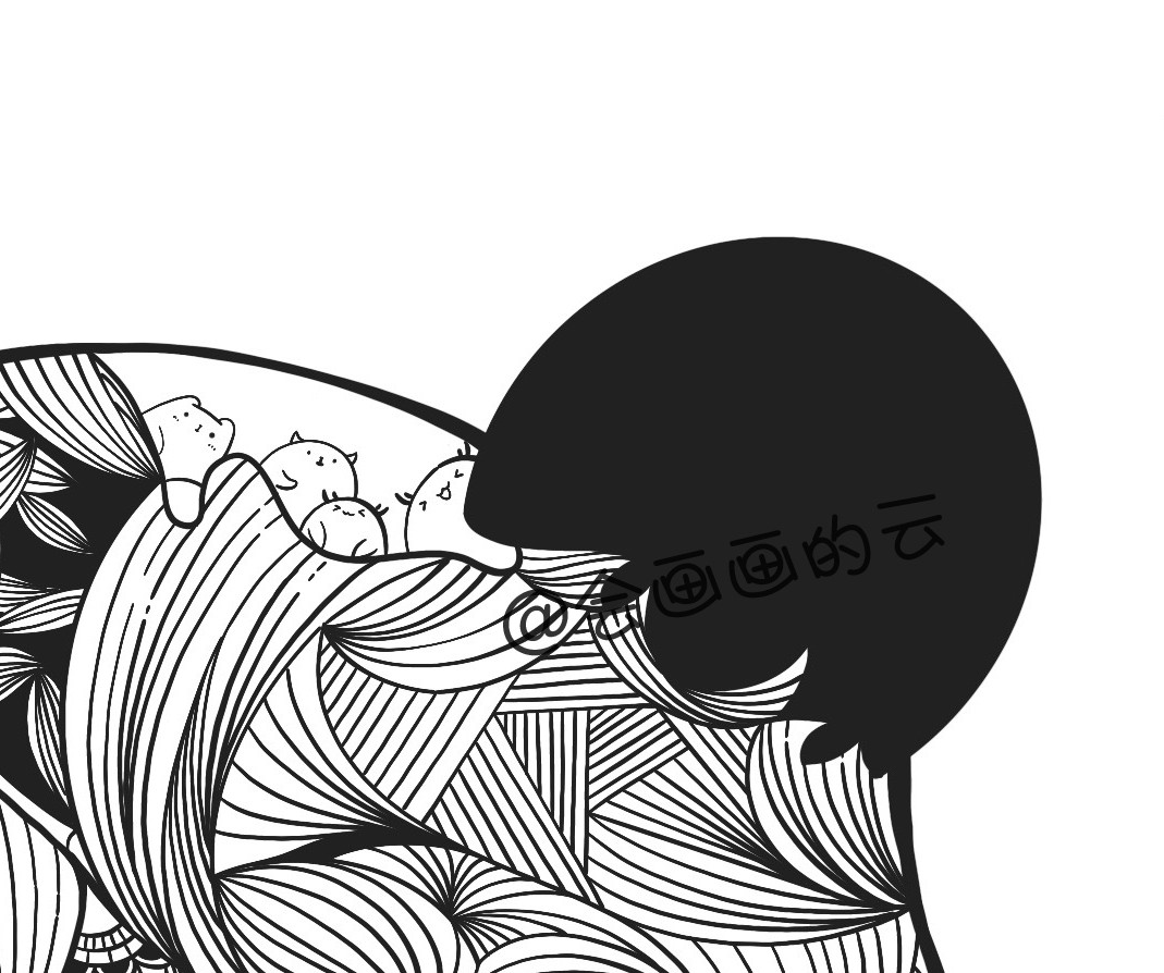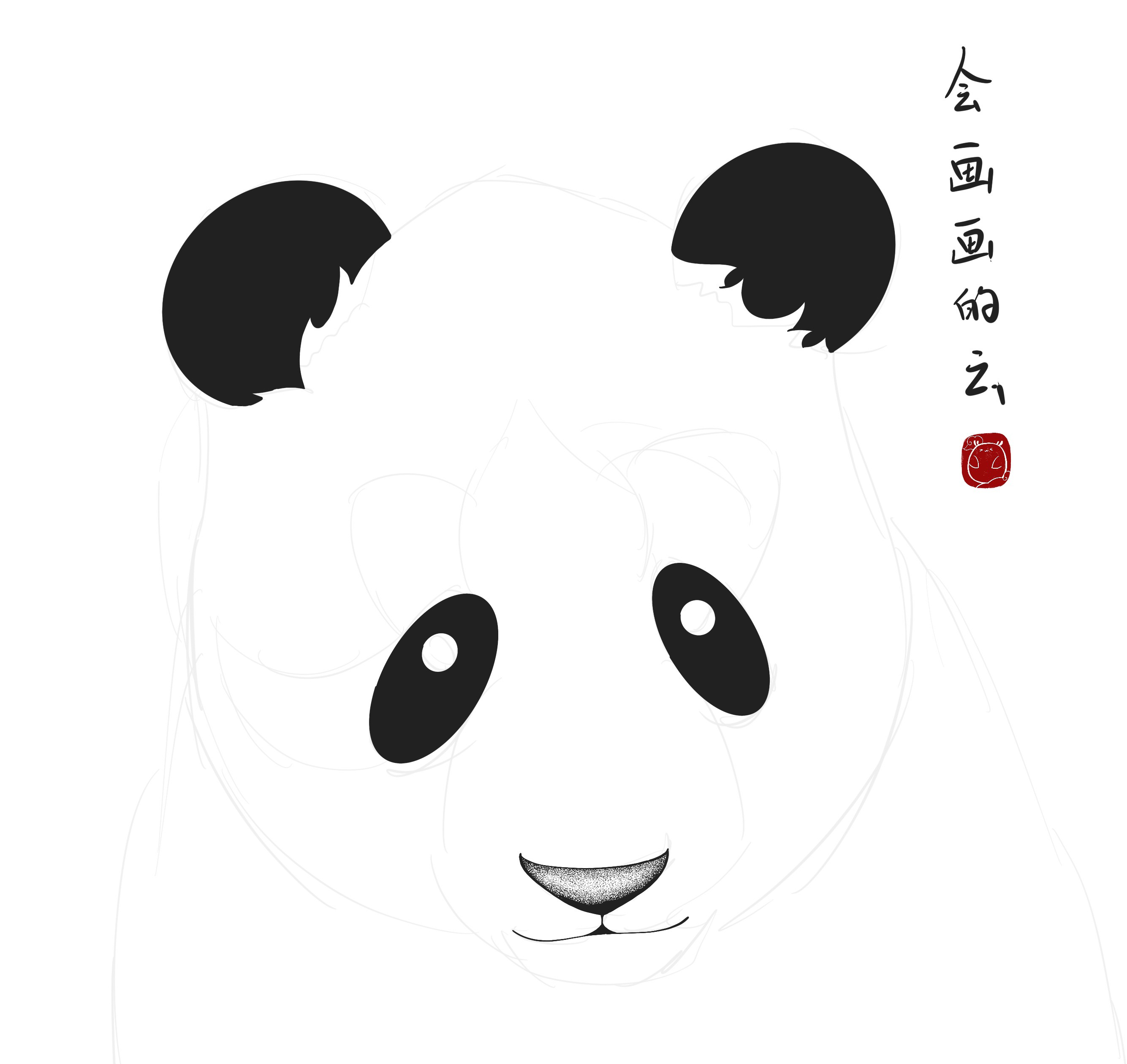 从眼睛和耳朵开始画,黑色就可以喽,眼睛有点喜感,先画出大概的轮廓做参考用,鼻子上画的都是点点哦,需要很多的耐心呢;