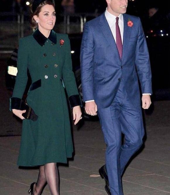 同样的款式不一样的颜色,凯特王妃对于喜欢的大衣总是喜欢买上好几件不同颜色的。这一款墨绿色比较适合参加各种严肃的会议以及宗教场合,墨绿色的气质更加内敛和沉稳,同时也是很显肤色,像凯特王妃搭配黑丝袜穿着,有着一种端庄优雅的气质。