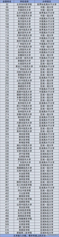 二、医学院校最新排名一览表