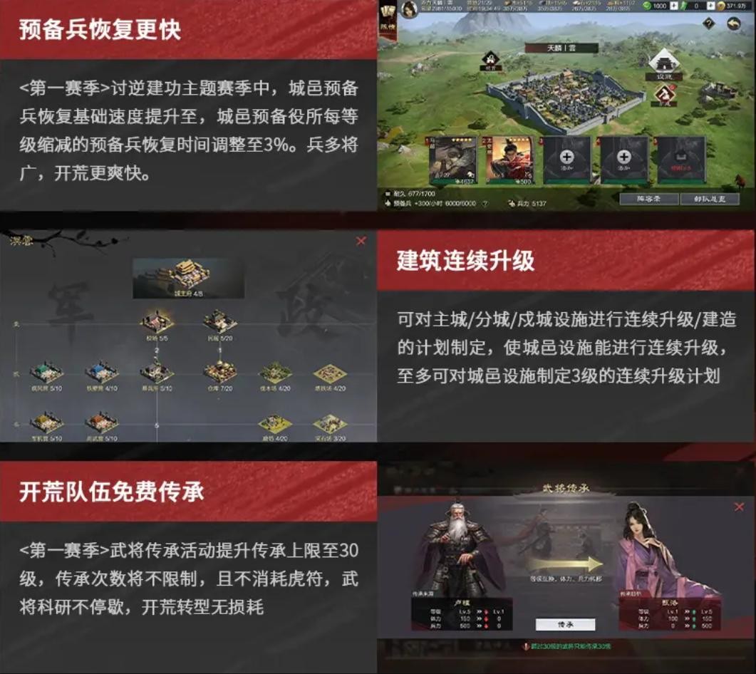 此外,新赛季进行的一系列利于开荒的革新也让人眼前一亮。预备兵恢复速度的加快、建筑的连续升级、开荒队伍的免费传承以及部分土地守军难度的降低,都为玩家在开荒阶段提供了便利。这些革新措施能够让玩家更快地发展壮大自己的势力,更好地应对后续的挑战。小编认为这些改变充分体现了游戏开发者对玩家体验的关注,让游戏更加友好且易于上手。